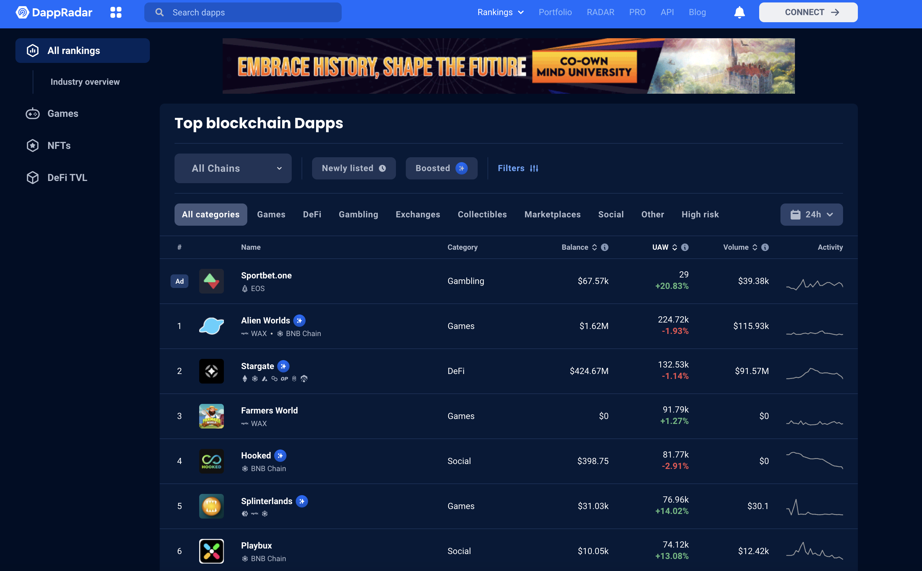 DappRadar(https://dappradar.com/)