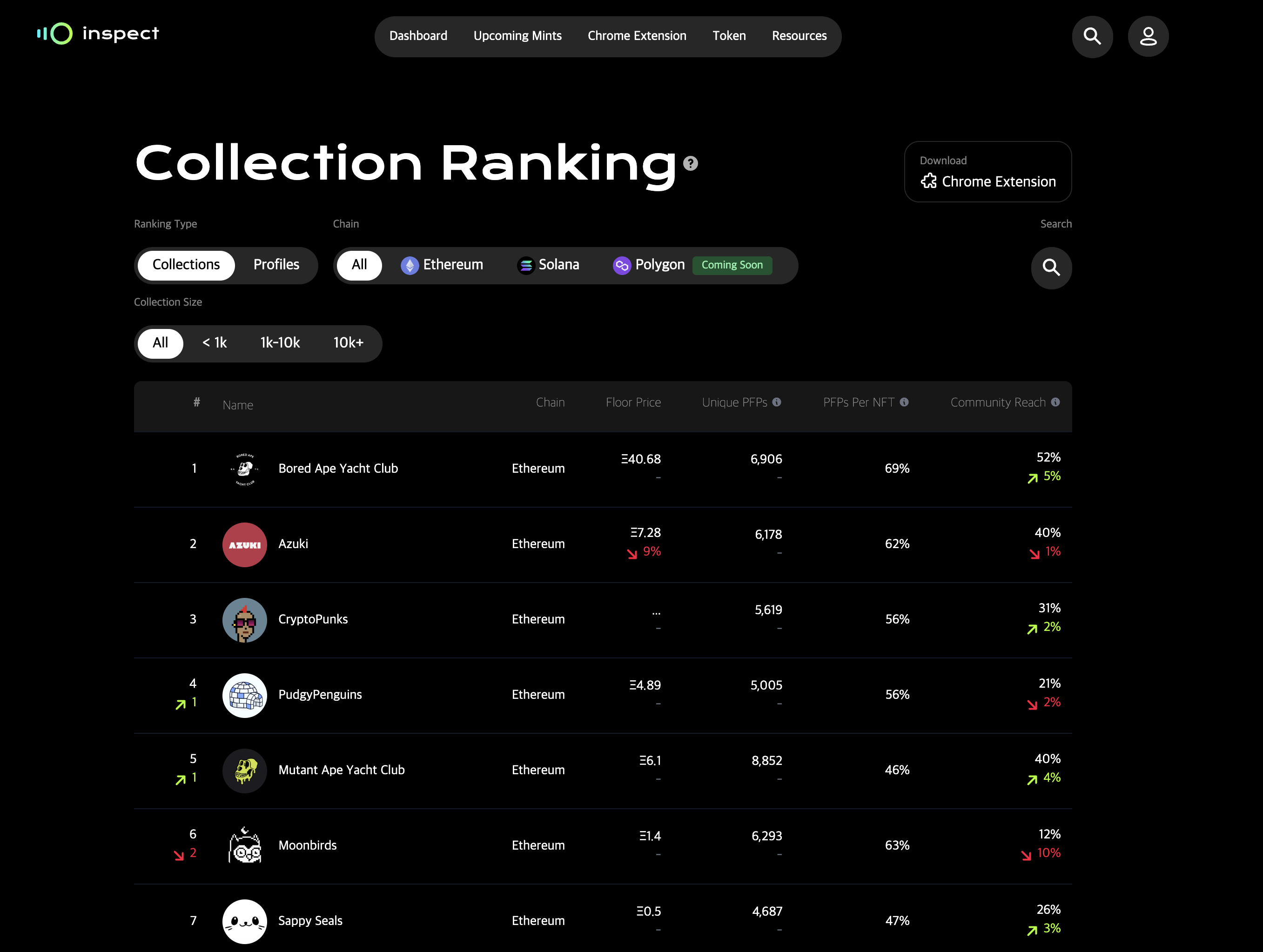 선호하는 NFT 프로젝트에 대한 시장 성향을 모니터링할 수 있는 도구입니다. LunarCrush와 같지만 NFT에 특화되어 있습니다.