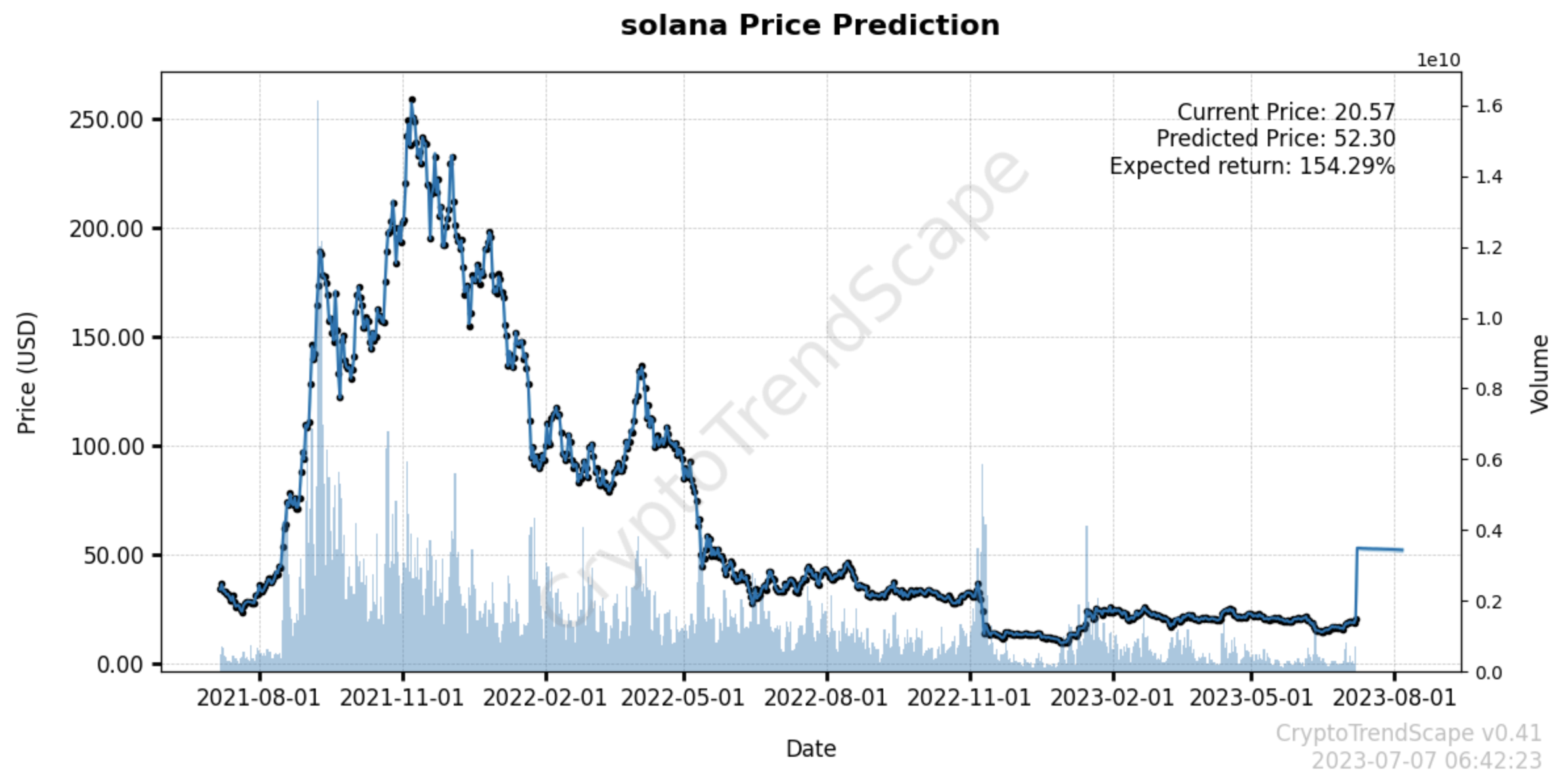 "CryptoTrendscape utilizes machine learning to conduct time-series analysis using our proprietary algorithm, based on the past two years of data. As a result, it generates a model that predicts the prices for the following month."