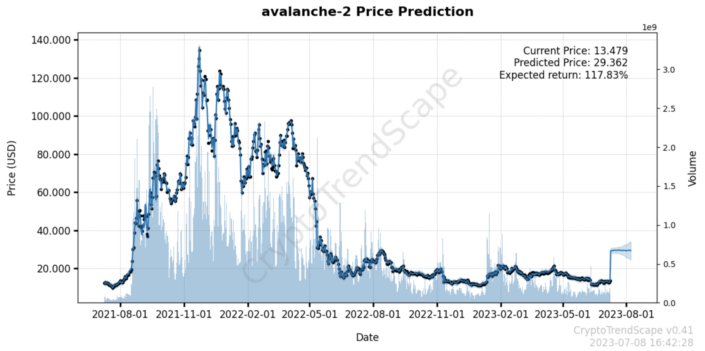 "CryptoTrendscape utilizes machine learning to conduct time-series analysis using our proprietary algorithm, based on the past two years of data. As a result, it generates a model that predicts the prices for the following month."