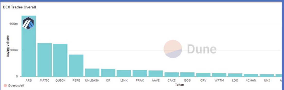 4. $ARB 지난 14일(7월 4일 기준) 동안 DEX에서 가장 많이 구매한 알트코인(ETH 제외)입니다.