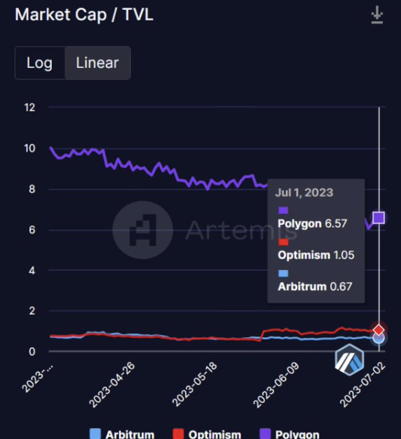 7. Arbitrum의 MCAP/TVL 비율은 1 미만입니다.
