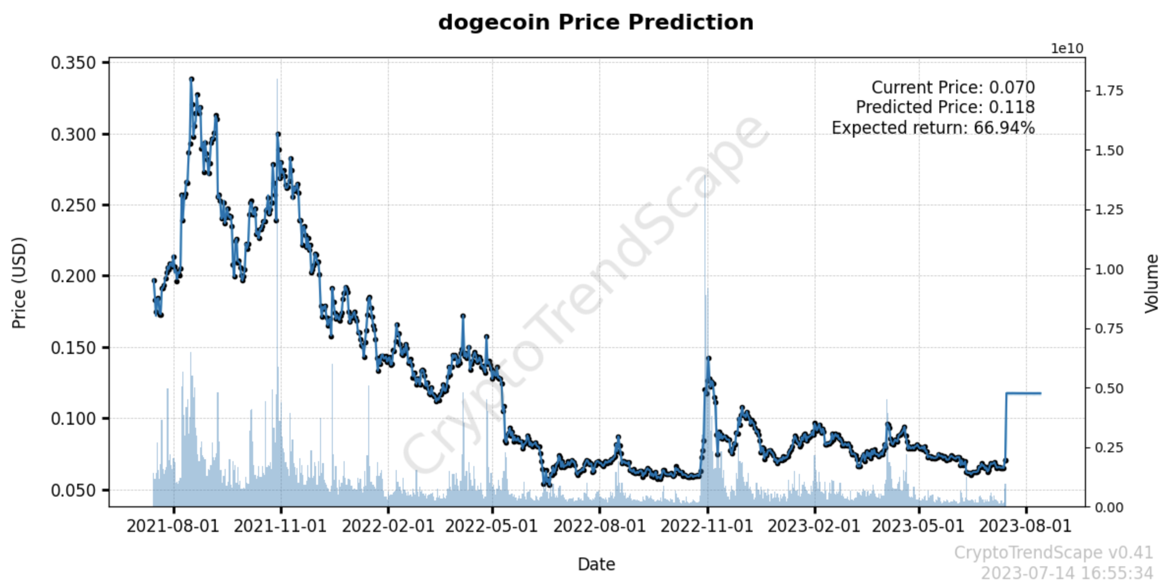 "CryptoTrendscape utilizes machine learning to conduct time-series analysis using our proprietary algorithm, based on the past two years of data. As a result, it generates a model that predicts the prices for the following month."