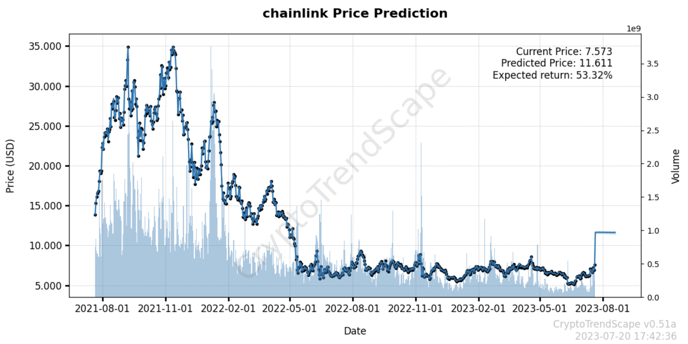 "CryptoTrendscape utilizes machine learning to conduct time-series analysis using our proprietary algorithm, based on the past two years of data. As a result, it generates a model that predicts the prices for the following month."