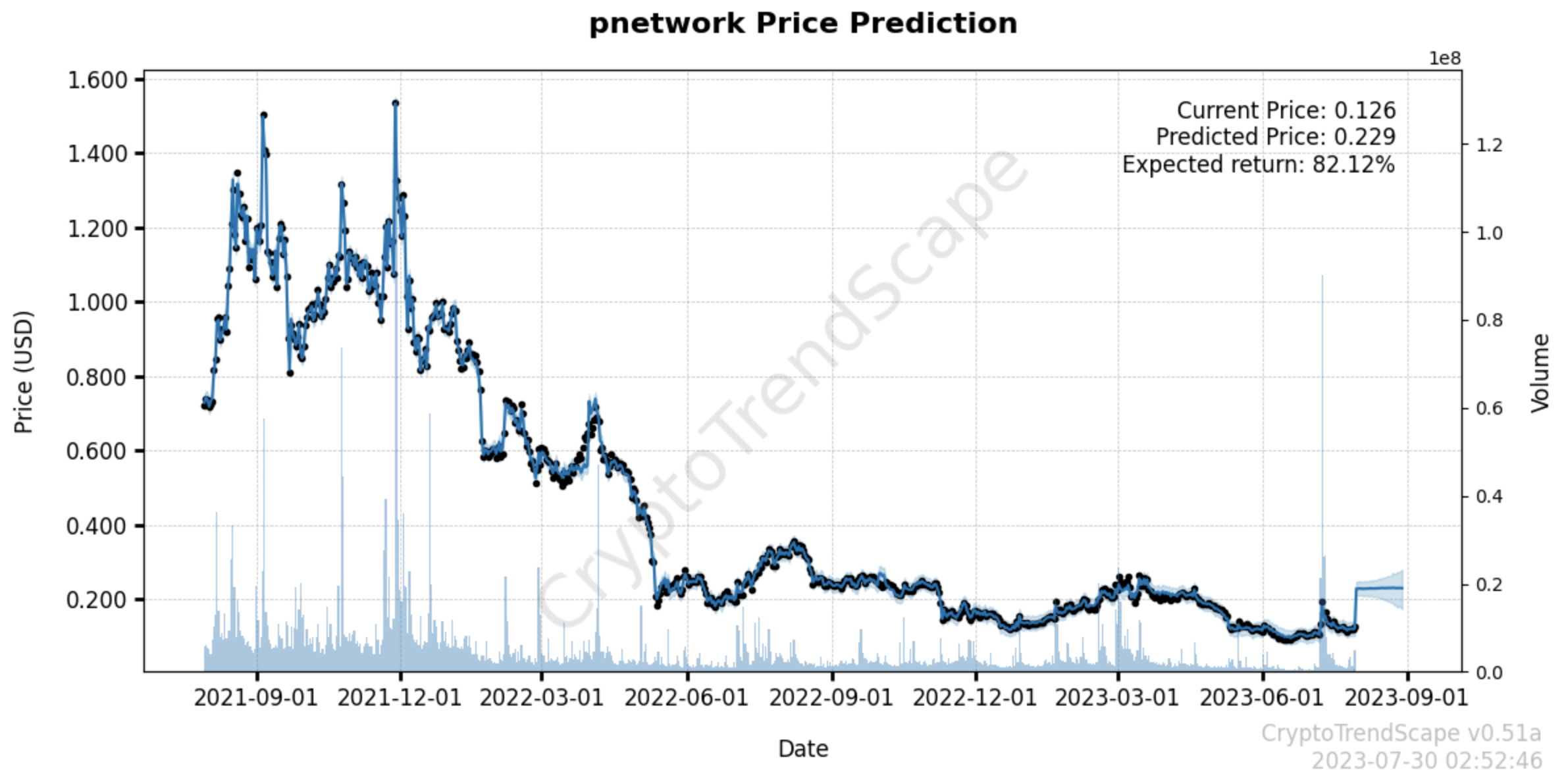 "CryptoTrendscape utilizes machine learning to conduct time-series analysis using our proprietary algorithm, based on the past two years of data. As a result, it generates a model that predicts the prices for the following month."