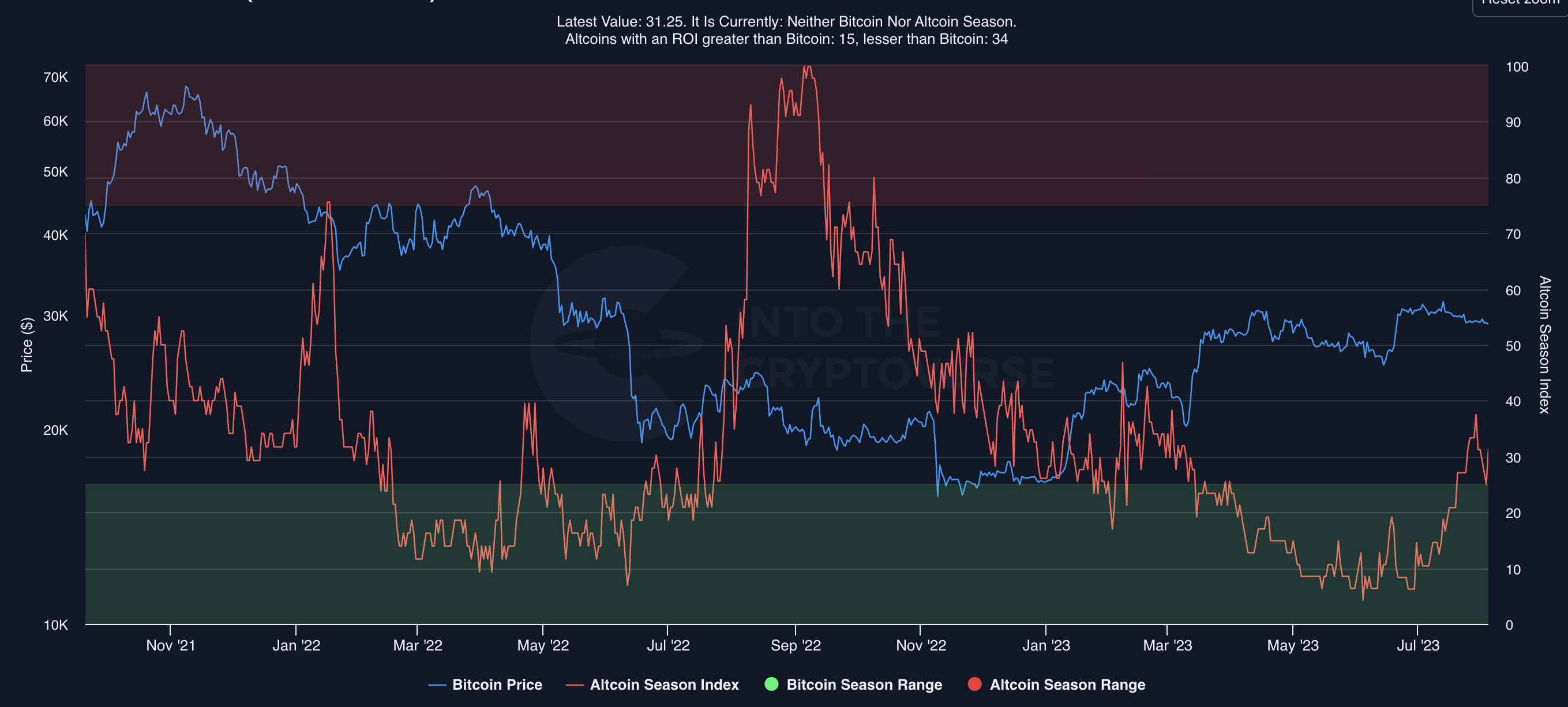 약세장과 초기 상승장 동안 비트코인은 대부분의 알트코인을 능가하는 경향이 있습니다. 이 기간은 이 차트에 사용된 방법론을 사용하여 비트코인 월/계절로 수학적으로 정량화할 수 있습니다. 중요한 알트코인 랠리는 비트코인의 지역 최고점 이후에 발생하는 경향이 있습니다. 이 기간은 마찬가지로 이 차트의 정보를 사용하여 알트코인 월/계절로 수학적으로 정량화할 수 있습니다.