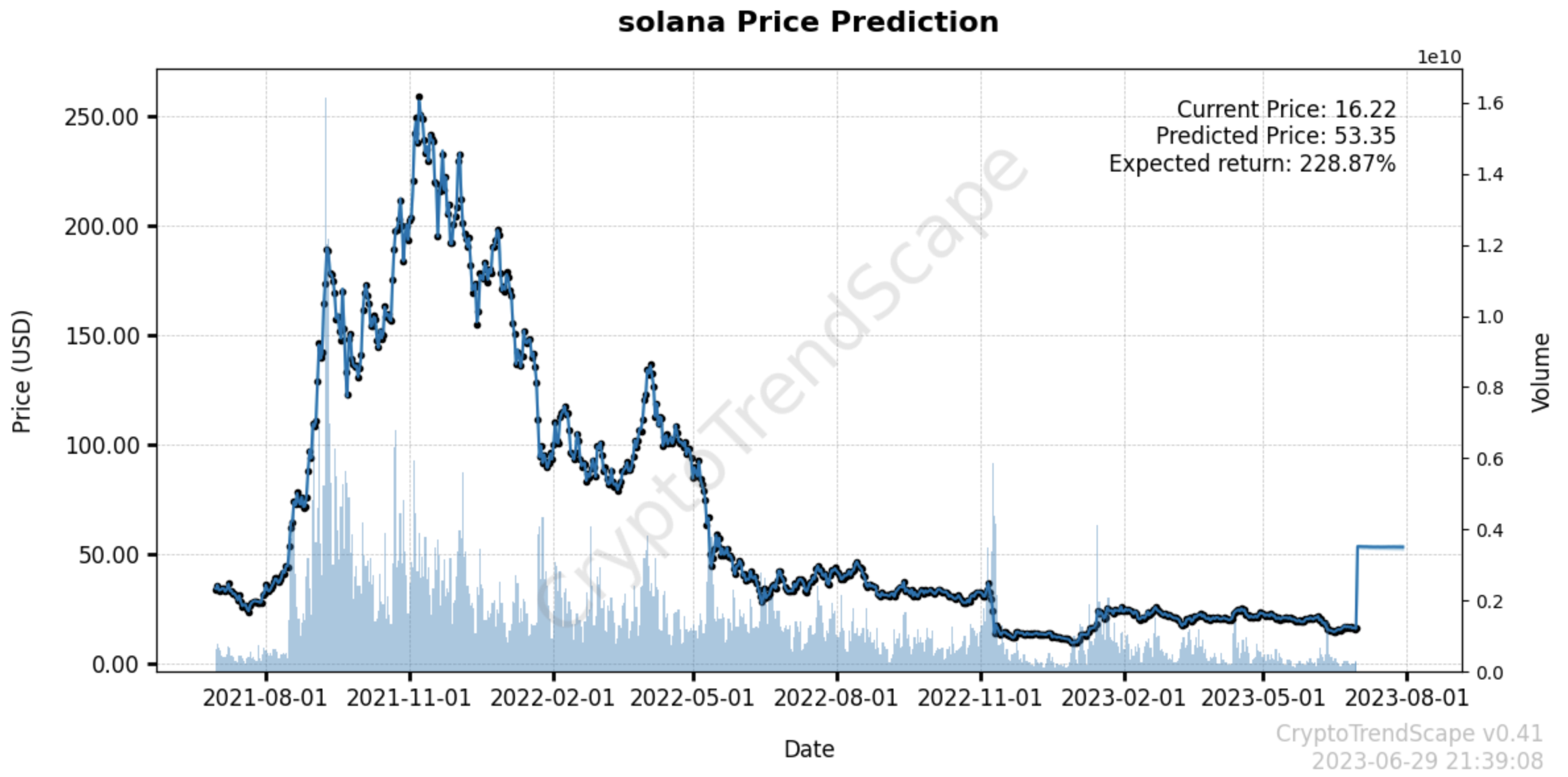 "CryptoTrendscape utilizes machine learning to conduct time-series analysis using our proprietary algorithm, based on the past two years of data. As a result, it generates a model that predicts the prices for the following month."