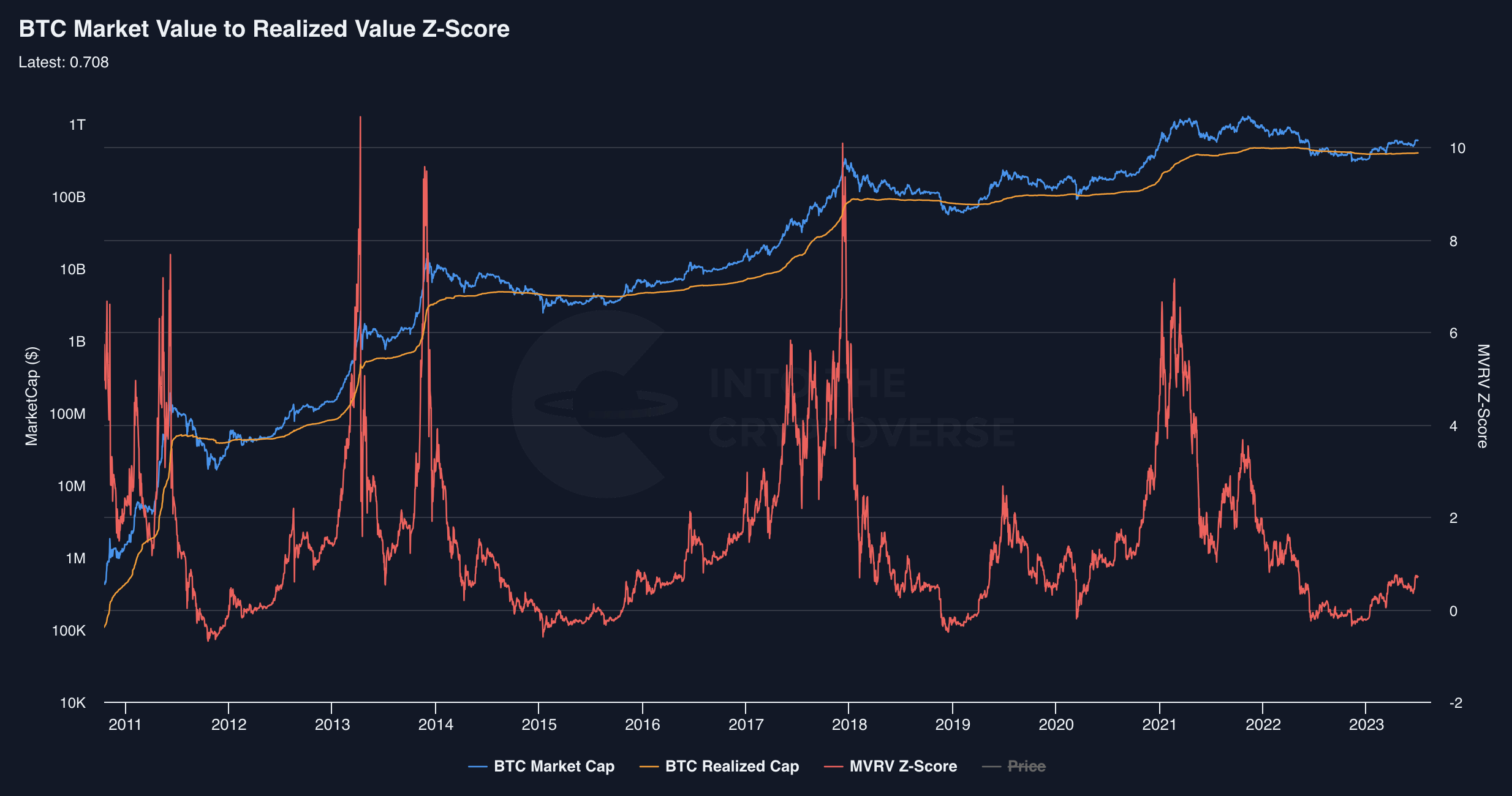 MVRV Z-Score가 0.708인 상황에서 비트코인의 가격이 안정적으로 상승하고 있기 습니다.