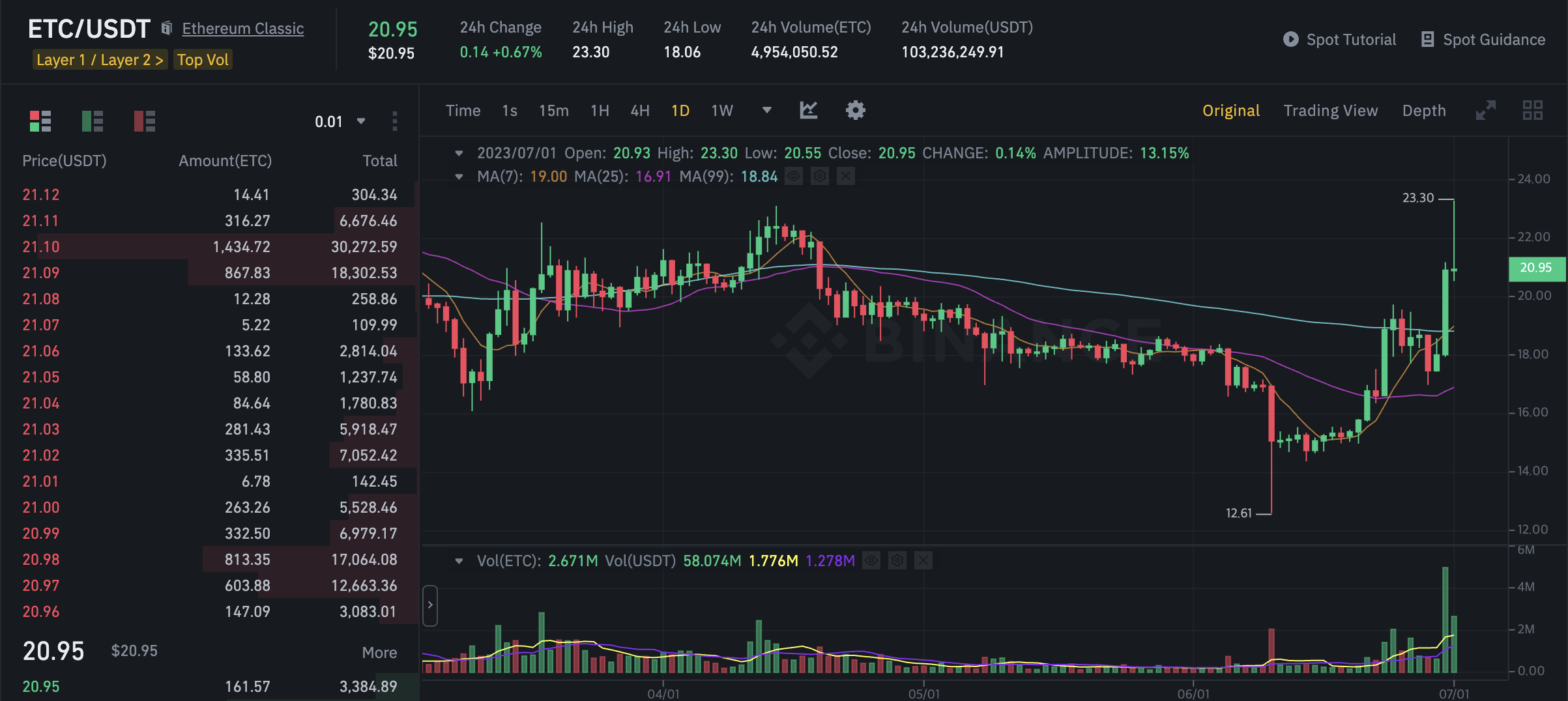 6월에는 구 메이저 코인들이 움직이면서 이더리움 클래식(ETC)도 상승을 주도하였습니다. ETC는 내년 6월 반감기 테마를 가진 코인 중 하나로, 그레이스케일이 크게 매집하고 있는 코인입니다.