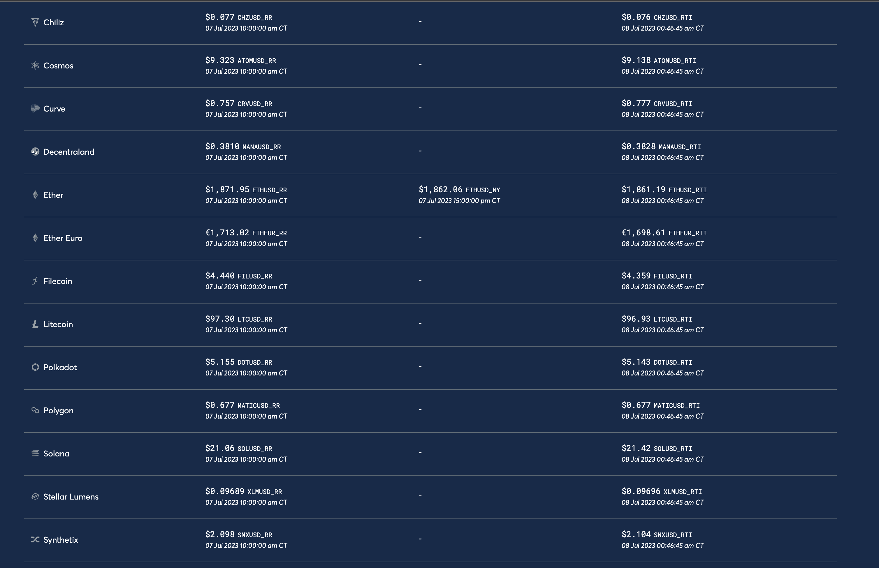 Get reliable pricing information for cryptocurrencies like bitcoin and ether with reference rates and real-time indices based on crypto transactions.